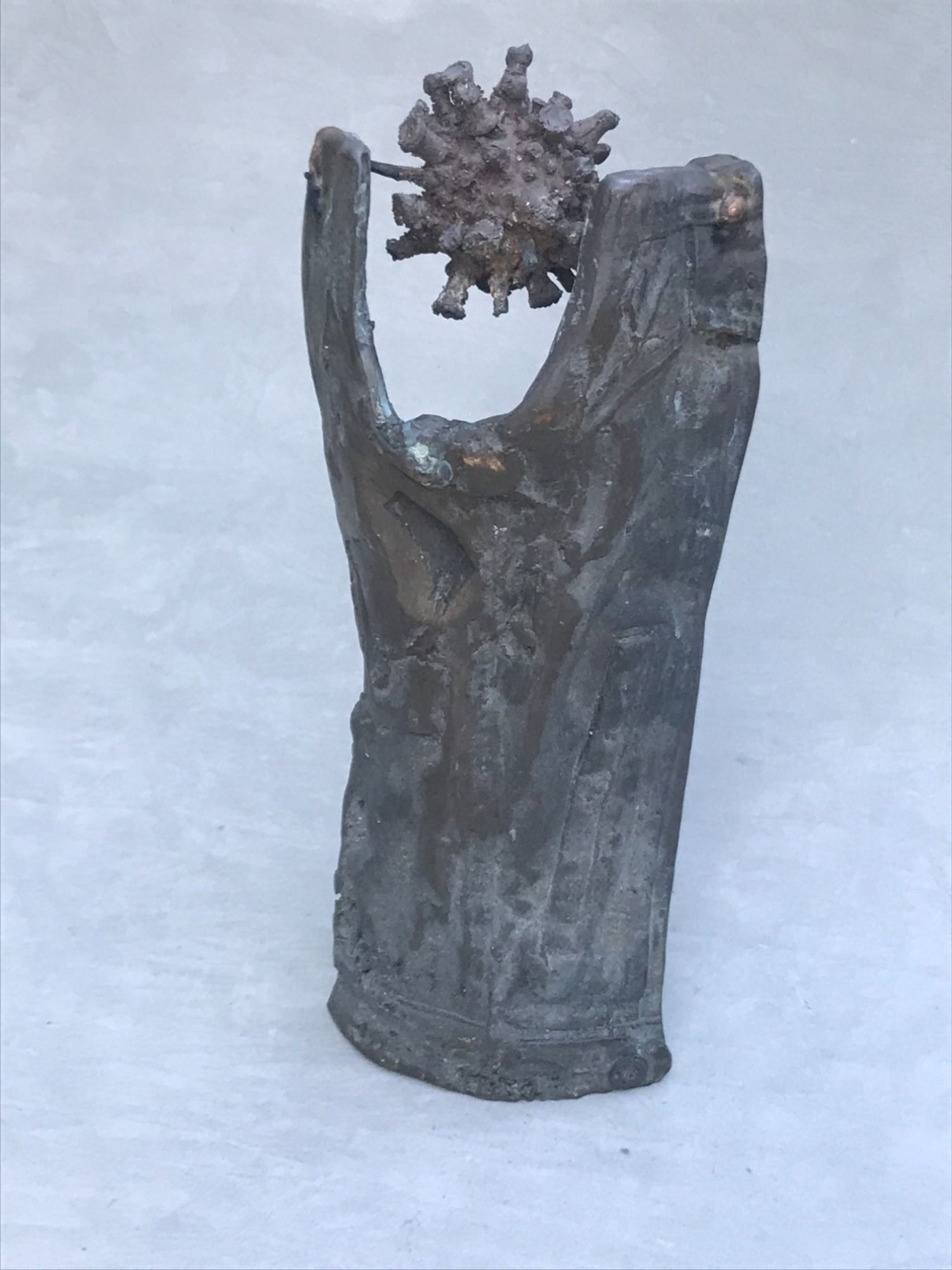 Ich suchte im Laufe der Zeit die Herausforderung und verwendete zusätzlich zum Wachs auch andere brennbare Materialien, die im Ofen bei 700° ihren Aggregatzustand aufgaben, also verbrannten, so dass in der zylindrischen Form aus Schamott und Gips ein Hohlraum entstand. – siehe die durchschossene Original-Uniformjacke, mein größtes Stück zum Thema „Afghanistan-Krieg“.