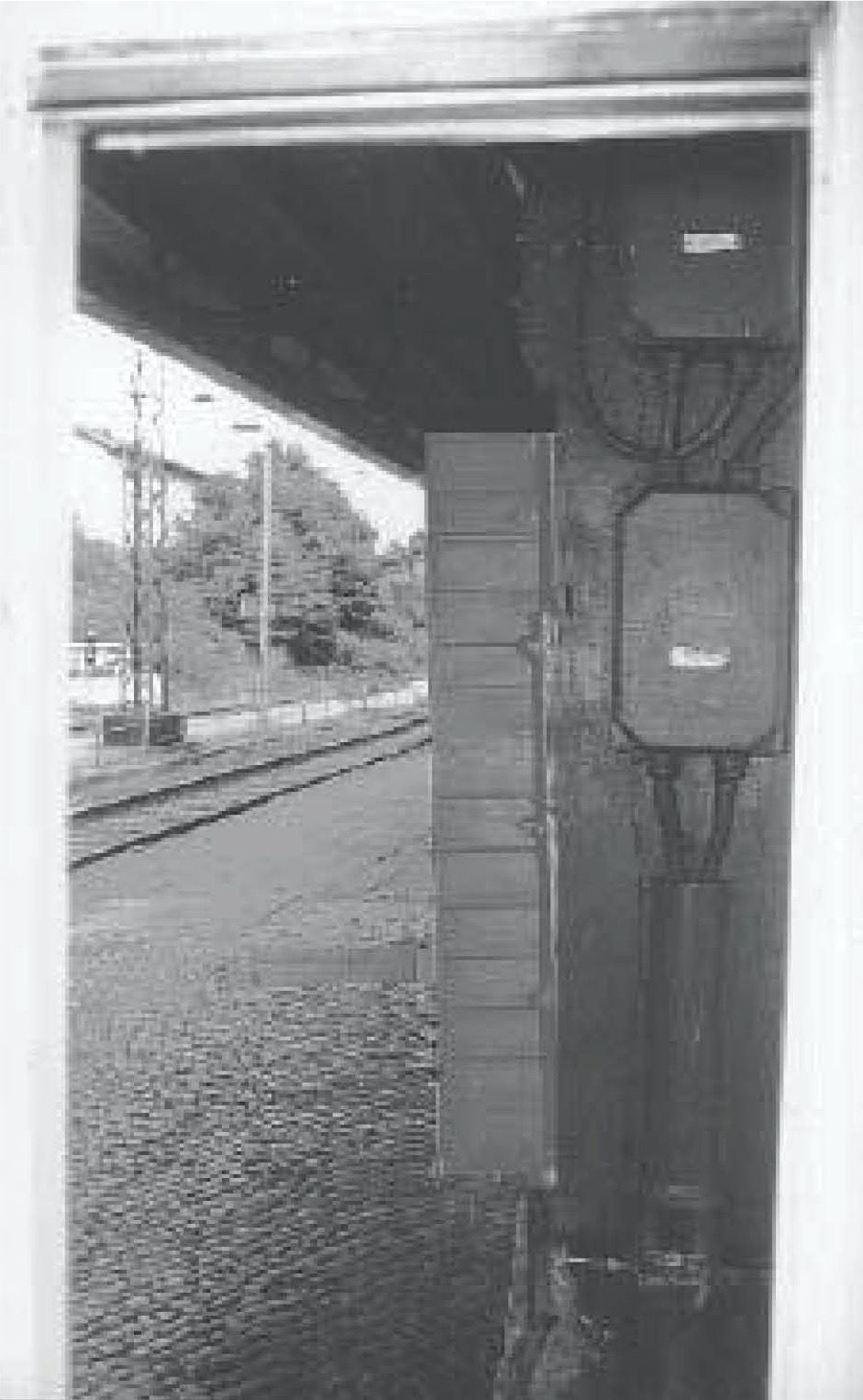 Da der Kiosk noch an seiner alten Stelle stand, sah ich mir die Sichtposition der Zeugin Maron aus dem Inneren des Kiosk durch das Verkaufsfenster an. Auf den Liegeort von Wolfgang Grams auf den Gleisen hat man aus dem Kiosk eine gute Sicht (siehe Bild